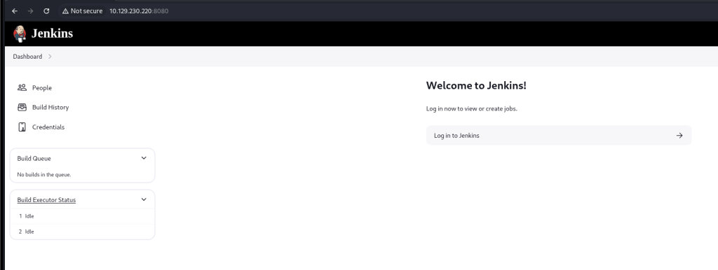 This nmap scan revealed two open ports, 22 and 8080, where the latter was for a Jenkins instance.