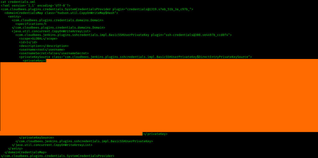 There was also a credentials.xml file, with an encrypted private SSH key for the root user.